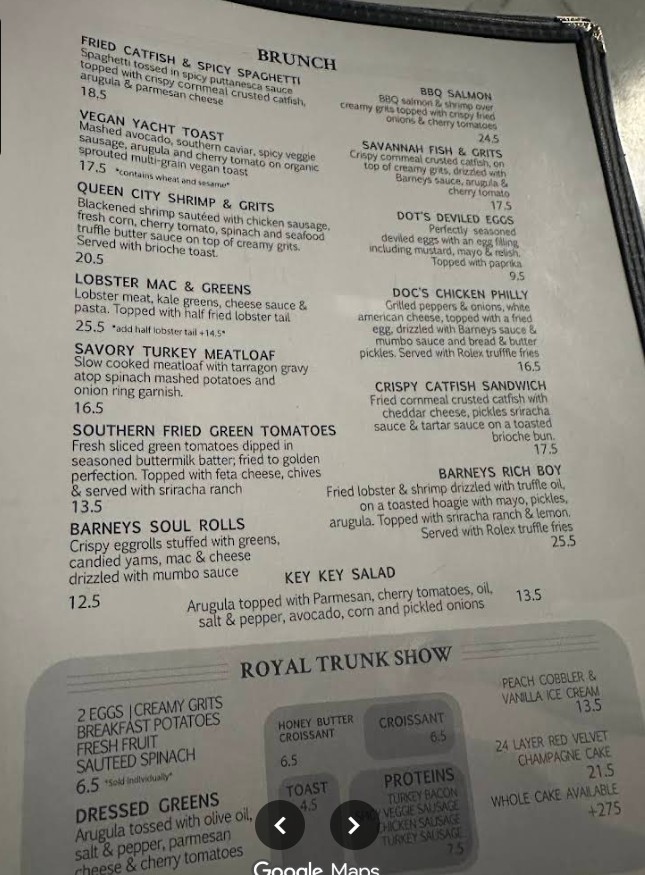 I recently visited Breakfast at Barney’s, and it was an incredible experience from start to finish! The food was absolutely delicious the chicken and waffles were phenomenal, with the wings perfectly seasoned, and the chicken Philly sandwich was equally fantastic. The truffle fries were amazing, and the peach basil drink was the perfect combination. The peach cobbler was on point not too sweet, but just right. Additionally, the staff was wonderful everyone, from the waitstaff to the bussers, was incredibly kind and attentive. Our waitress, Diamond, was absolutely the best, making our visit even more enjoyable. The manager and the whole team truly made us feel welcome. Breakfast at Barney’s is definitely a must go spot. It’s clear why they’ve been around for years they truly have the best cooks and an amazing atmosphere.